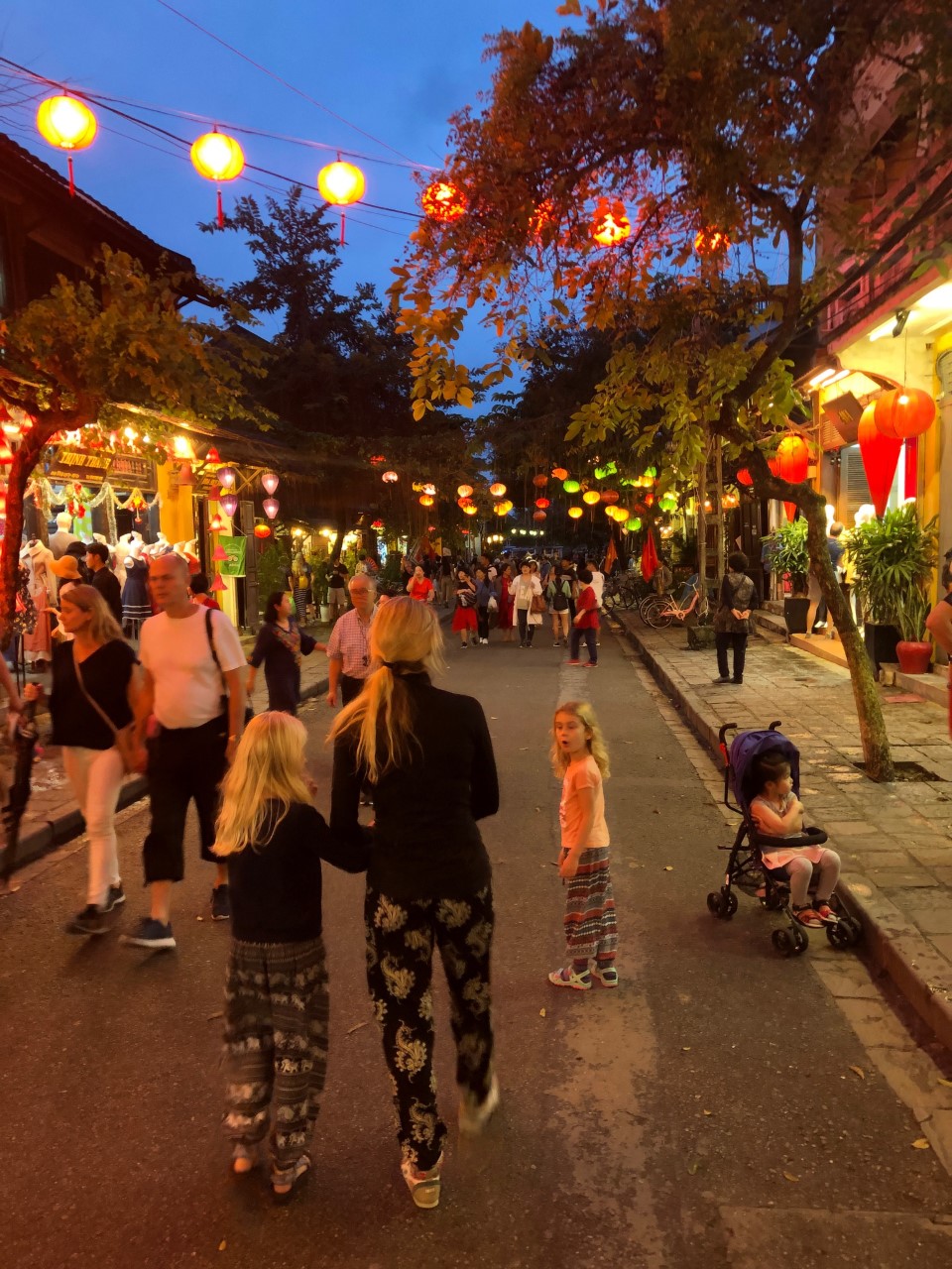 Net als de rest van de dagen in Hoi An. Een fijne tijd hebben we gehad. Het is een verschrikkelijk toeristisch dorp, je struikelt er over de busladingen Chinezen en Koreanen die de authentieke huisjes komen bekijken, maar het is de omgeving die voor de relaxte sfeer zorgt. En niet te vergeten de prachtige, gekleurde lantaarns in de straten.