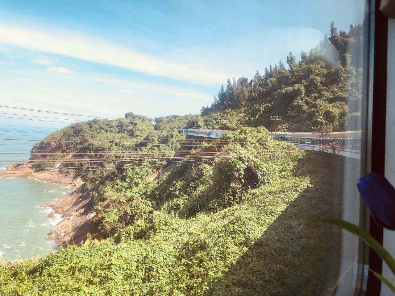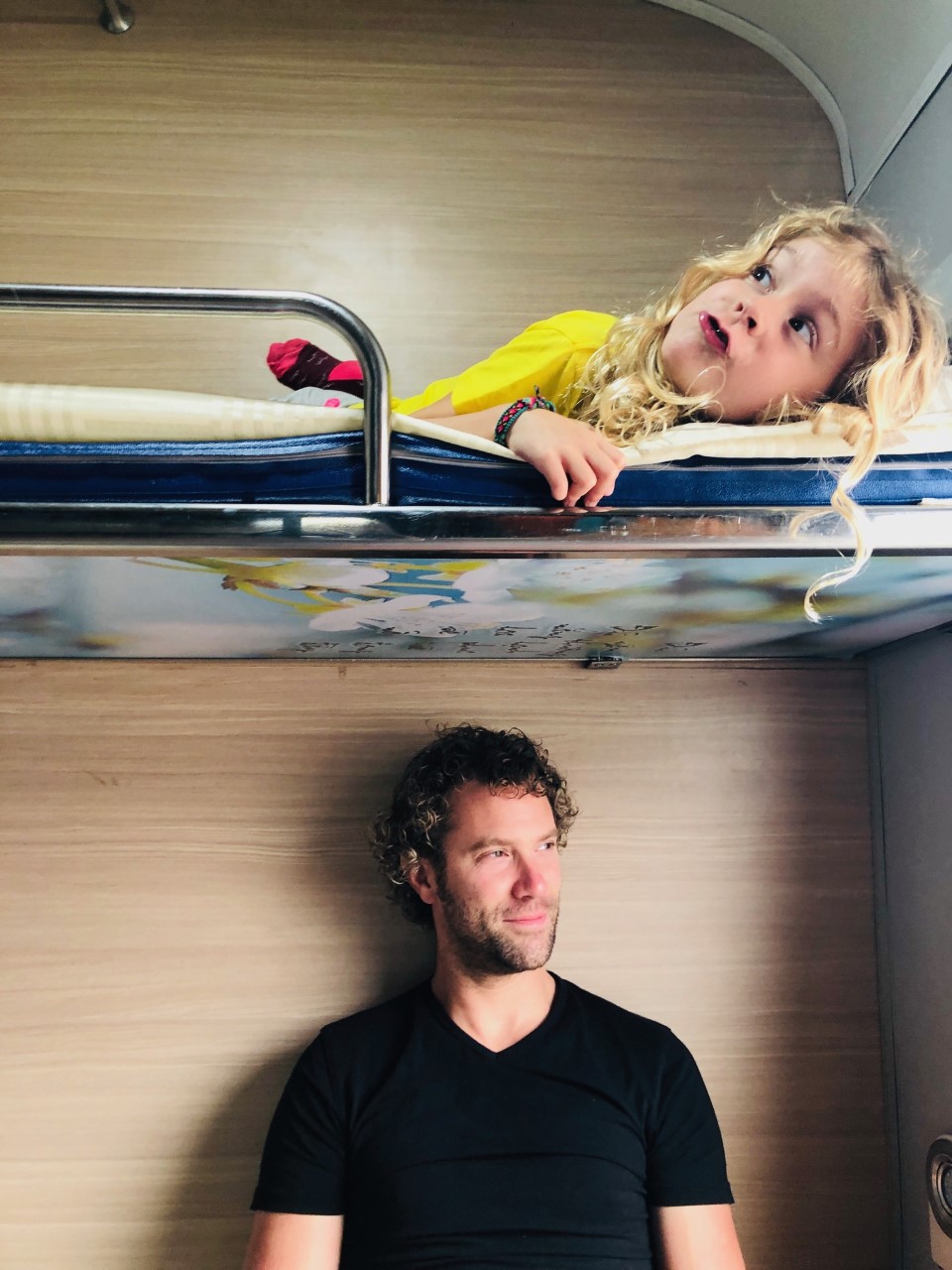 “Eh, volgens mij zag ik een muis.” zei ik. “Echt? Waar dan?” vraagt Ruud. “Nou, hier onder het bed.” We zitten in de Reunification Express. De beroemde trein die Hanoi met Ho Chi Minh verbindt, van noord naar zuid. Maila hangt met haar krullenkoppie naar beneden, stuntend op het bovenste bed. Terra ligt op het andere bed haar huiswerk te maken. We proberen de muis uit onze cabine te krijgen, maar het snelle diertje kruipt in de prullenbak. Dan maar de gehele prullenbak op de gang. Het land trekt aan ons voorbij en we zien vooral rijstvelden, riviertjes, water, heuvels, de zee bij Hue en dorpjes. Het zal Terra en Maila worst wezen. We hebben vier bedden in onze eigen cabine en Maila wil het liefst van beneden naar boven, om tien seconden later weer naar beneden te klimmen. Hygiëne is er niet echt, gezien de muis en overige levende have in de kussens, maar zo’n treinreis is al een belevenis op zich. Onze trein brengt ons naar Hoi An.