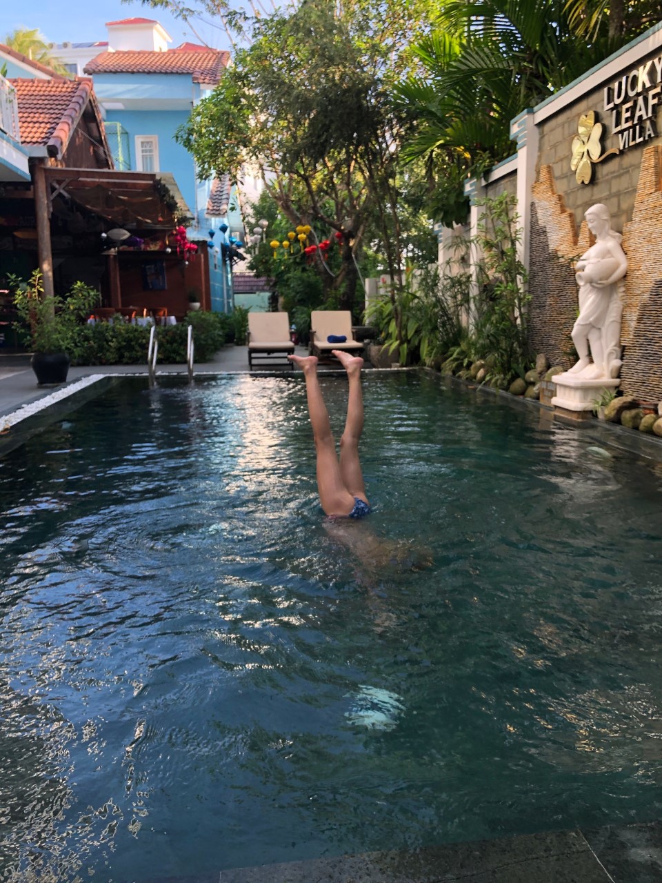 Ik werd me ineens bewust van de eenzaamheid van beide dames. Kim zit iedere avond alleen haar achter haar bordje ‘Receptie’. Ze heeft geen vriend, er komt niemand langs, het hotel is haar kleine gevangenis geworden. Bi heeft een klein kindje, maar haar man is er vandoor, haar moeder is vorig jaar overleden en ze woont nu weer bij haar vader. Ze krijgt tranen in haar ogen als ze erover praat. Ze moet zeven dagen per week werken en haar kind iedere dag naar de crèche brengen. Twee eenzame zielen samen in een leeg hotel, niet van elkaar wetend hoeveel ze misschien gemeen hebben. De pomp van het zwembad is de enige hartslag die er nog is. En zelfs die staat vaak uit.