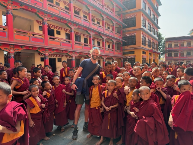 De ‘tussenweek’ in Kathmandu werd gevuld met huiswerk, cricket kijken, uitstapjes voor souvenirs en een bezoek aan een bijzonder, boeddhistisch klooster. Dankzij Ana, onze Colombiaanse vriendin die er ooit twee maanden vrijwilligerswerk heeft gedaan, mochten we naar binnen. Er wonen 600 jonge monniken, waarvan de jongste drie jaar oud is. Sommige zijn wees, sommigen worden er naar toe gebracht omdat ze de zoveelste zoon in de rij zijn en hun ouders geen geld hebben om hen een waardig bestaan te geven. Ik heb nog nooit zoveel jongens bij elkaar gezien. Wij keken onze ogen uit naar hen en zij naar ons. Het Kadampa Monastery ziet bijna geen toeristen en al helemaal geen blonde meisjes en een reus van 1.90 meter.