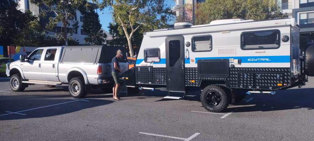 Mijn bovenkant hoofd komt tot aan de onderkant van het raam. Het ding is bijna zeven meter lang. Een volle tank kost 380 dollar, sturen is een workout op zichzelf en hij heeft een draaicirkel van een halve rotonde. Ik moet iedere keer lachen als we met de auto gaan. Het woord auto klopt helemaal niet. Dit is meer een monstertruck die over andere auto’s heen kan rijden. Ruud rijdt het ding overigens alsof ie hier al jaren woont. Rechterarm uit het raam, wapperende krullen onder z’n pet vandaan, zwembroek aan, hempie van Ripcurl en op z’n blote voeten naar de parkeermeter. Helemaal in z’n element. Even terzijde: vandaag hebben we onze off-road caravan opgehaald. Ruuds woorden: “Dit is het leukste speelgoed wat ik ooit heb gehad!” Waarschijnlijk staat een zaagtafel op nummer twee, als ik hem een beetje ken.