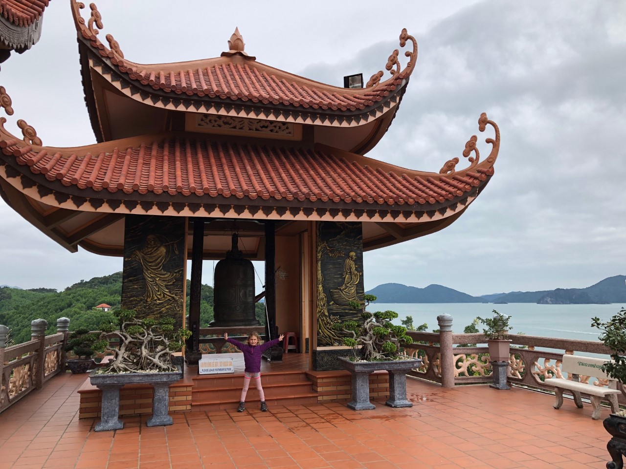 Op onze laatste dag hebben we ’s ochtends eerst de plaatselijke markt bezocht, waar de meest gekke vissen in het ijs lagen. Maar ook kwallen, inktvissen en degenkrabben. Daarna zijn we naar een boeddhistische tempel gereden. Een mooie tempel met een prachtig uitzicht!! Ik had er graag een uur willen zitten, maar onze bus stond klaar om naar Hanoi te vertrekken. 17 uur waren we terug. Perfecte timing voor een hamburger met frietjes, aangezien we de afgelopen dagen alleen rijst met vis of ei hadden gegeten 🙂