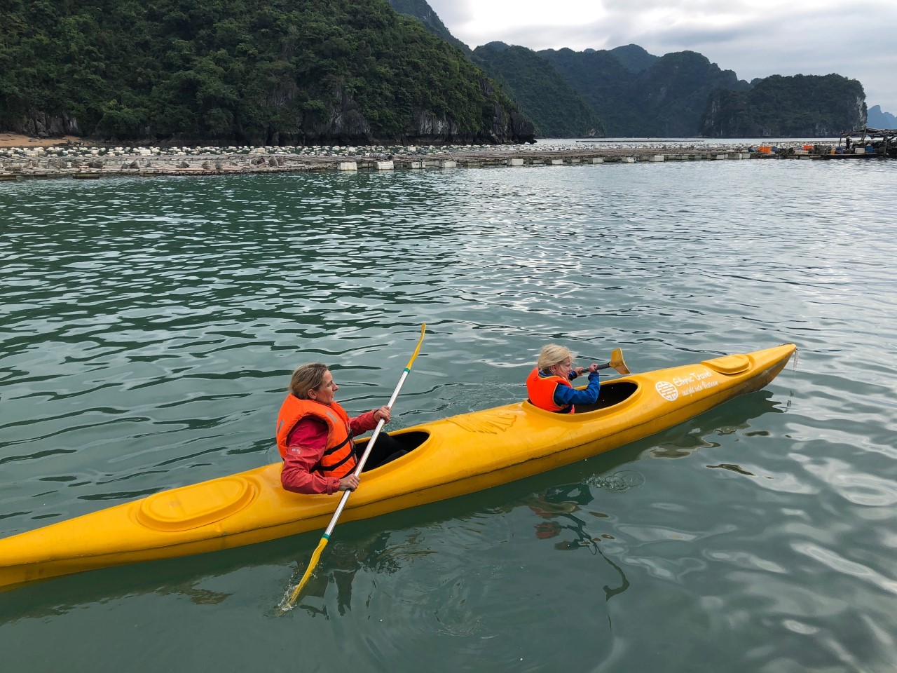 Een busrit in een comfortabele 9-seater bracht ons, in 5 uur, naar de haven van Cam Trung. Hier zijn we aan boord gegaan van een boot van Ethnic Travel, waar we een verse, uitgebreide lunch geserveerd kregen. Na twee uur varen konden we een uurtje kayakken. Te gek! Een rondje peddelen om een eiland. De luie spieren weer even activeren. Voor de niet kayakkers was vissen een optie. Daarna was het nog een klein stukje varen en kwamen we aan op het eiland Quan Lan, waar we in een tuktuk naar onze homestay gebracht werden. ’s Avonds konden we onze eigen loempia’s rollen en aanschuiven aan een uitgebreid gedekte tafel. Verzadigd kropen wij ons bed in.