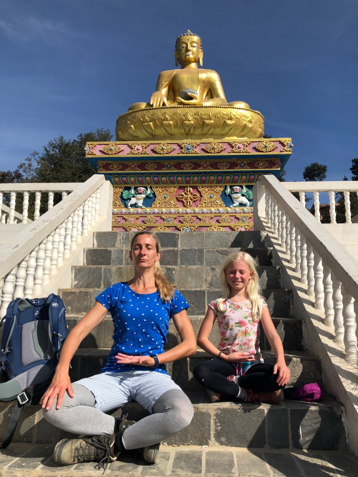 Je kunt verschillende korte wandelingen maken rondom Nagarkot. Je kunt naar het Viewpoint lopen. Of de Nature Trail, waarbij je het dichte bos afwisselt met mooie uitzichten. Ook kun je naar andere dorpjes lopen, zoals Sankhu of Kartike. Als je in goede conditie bent kun je naar Bhaktapur lopen. Het is ongeveer 16 km, neemt vijf uur in beslag en je loopt via een zandweg en kleine paadjes dwars door de rijstvelden naar beneden. Alles wat je nodig hebt is een smartphone, de app ‘Maps.me’ en goede benen. Oja, neem ook lunch mee. Er is niet een duidelijke route met pijltjes of kleuren die je kunt volgen, maar via de app kun je goed zien waar je kunt lopen. Je komt in ieder geval langs een prachtig gouden, boeddha beeld wat sereen de vallei inkijkt. Wij vonden het een mooie afwisselende wandeling!